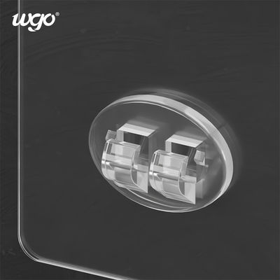 WGO Transparent Sticky Buckle Stick On Shower Shelf Wall Broom Holder Adhesive Hooks Clear / Silver